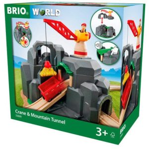 Every corner of the Crane & Mountain Tunnel offers something new to discover. Lift the crane and top of the mountain off and place it on the track for dual functionality. In addition to the multistorey railway passage and the majestic crane on top, four different sounds activate when the train is passing through th