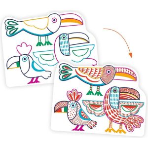 A pocket with 12 pictures to be colored in using a jumbo colored pencil, perfect for little ones. Color in the animal families using the pencil to reveal what’s hidden. It’s magic: the pencil only marks certain areas, uncovering patterns and revealing surprises! Magic effect: the pencil only marks the predetermined are