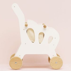 The sweet dreams pram has been designed in a classic traditional & aesthetic style with pretty, delicate detailing. Featuring soft pastel pink, cream and fresh white colours with heart and lace motifs. Its strong structure and unique retractable hand-seen canopy makes it the perfect pram to take soft toys and dolls