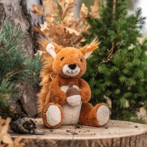 Does anyone have some nuts to spare for this cuddly little fellow? Our Phil squirrel sits expectantly on his backside stabilised with a granulate bag and wants to be stroked, cuddled and played with! Soft and snuggly, the 20 cm tall Phil is a perfect playmate for little hands. Primary Color: light brown Material: made