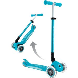 The most accessible Globber scooter—from price point to features—ELITE LIGHTS delivers the best value for your scooting kiddo. A 3-wheel scooter equipped with LED light-up wheels, a patented folding system, a 4-height adjustable T-bar, and a patented steering lock system, ELITE LIGHTS is packed with all the features yo