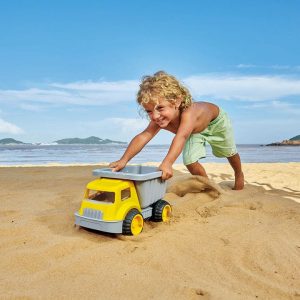Take on a sandy beach, playground sand box, or backyard dirt with this sturdy dump truck. On a rainy day you can even play inside at home. Playing with this dump truck toy will provide your child with hours of imaginative play. It helps promote hand-eye coordination, cognitive ability and motor skills. The outdoor play