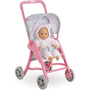 With a charming flowered print fabric and features inspired by those for real babies, Corolle's mon premier Stroller — with a folding canopy plus an adjustable belt — makes it easy to take a favorite baby doll for a walk in style. Made with a durable but lightweight plastic frame, the stroller fits baby dolls…