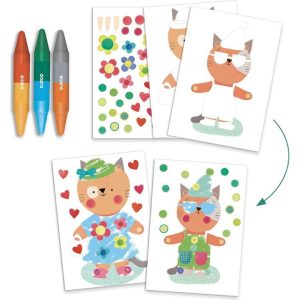 A beginner’s coloring set perfect for children aged 18 months and up. With the help of an adult, place a sheet in the box lid, followed by the stencil. Scribble in the holes and discover pretty pictures. A beginner’s coloring set. The sheets and the stencil are designed to fit the lid perfectly and stay…