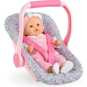 Ideal for make-believe moms and dads on the go, Corolle's Floral Baby Doll Carrier comfortably fits a 14- to 17-inch Corolle baby doll. Lightweight yet sturdy and styled like those for real babies, it features security straps and a handle that adjusts to three different positions to carry, gently rock or keep baby doll