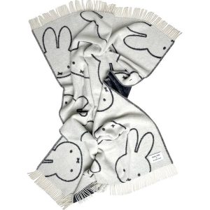The Miffy Blanket is a thick premium reversable blanket with fringes on the short sides. It's certified with the Woolmark and OEKO-TEX label.  Dimensions: 4.25 x 6.5 ft 100% New Zealand Wool Jacquard-woven 100% Renewable & Biodegradable Dry clean PLEASE NOTE: This item does not qualify for free shipping. There is a