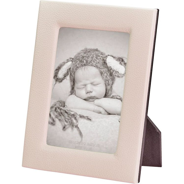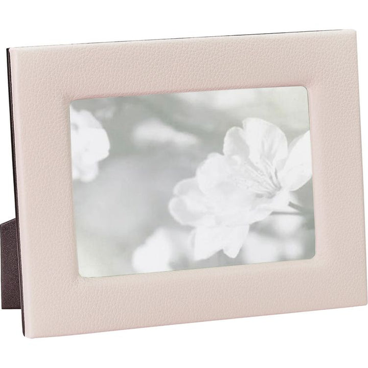 This rich leather frame beautifully accents your favorite photo. Handcrafted frames, wrapped in leather on both sides, with a sturdy metal easel. Convenient rear drop-down door for easy and frequent access to photos. Overall Size: 7" x 9" Opening: 5" x 7" Full grain leather