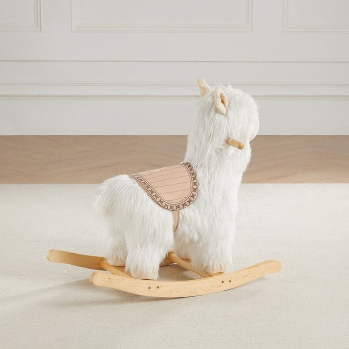 It’s a vast dessert out there, but the nursery or playroom is safe with our Alpaca Rocker. Soft faux fur and an authentic saddle, mane and tail nestled atop strong wooden rockers. Perch your toddler on the saddle and let the adventure begin.  Never leave baby unattended.  Ages 18 months to 3 years or 70 lbs. Materials: