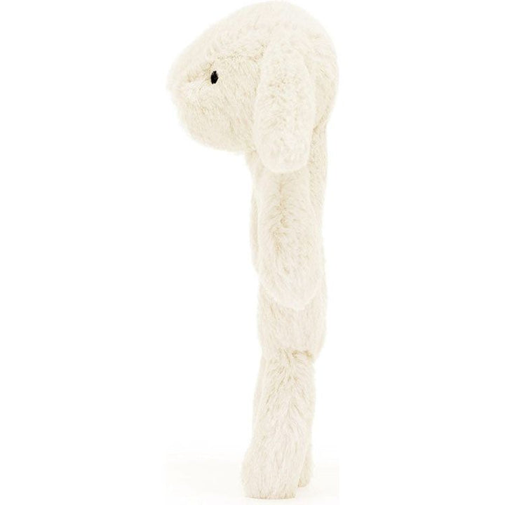 A treat for tiny hands, Bashful Bunny Ring Rattle can be grabbed by its soft paws, long lop ears or ring-shaped tummy. When given a gentle shake it will sound the rattle inside, much to baby’s delight! Crafted in a silver-grey coloured fur made from recycled fibres featuring a Bashful Bunny pink suedette nose and embro