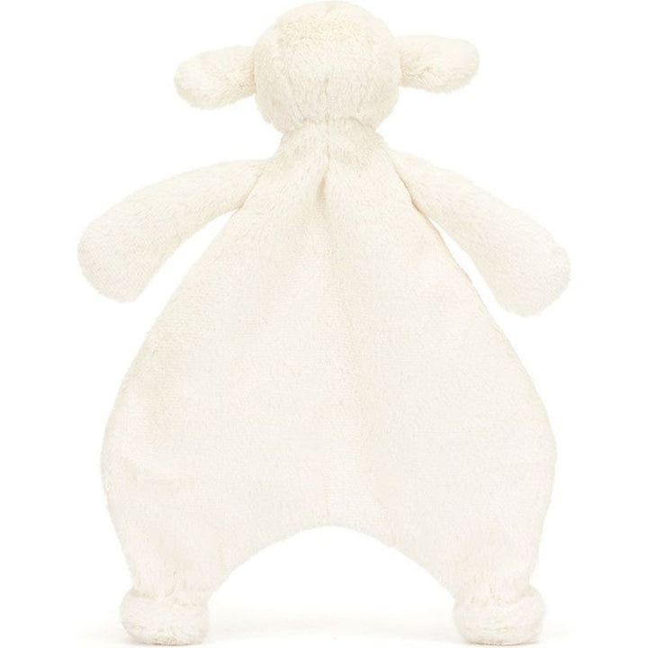 A gorgeous first gift for newborns, the Bashful Lamb Comforter is cloudy-soft in a delicate vanilla cream fur made with recycled fibres. Designed for calming cuddles with an un-stuffed tummy yet squashy soft hands and feet. With cute waggle ears and embroidered face features, this sweet lamb is a present to treasure. P
