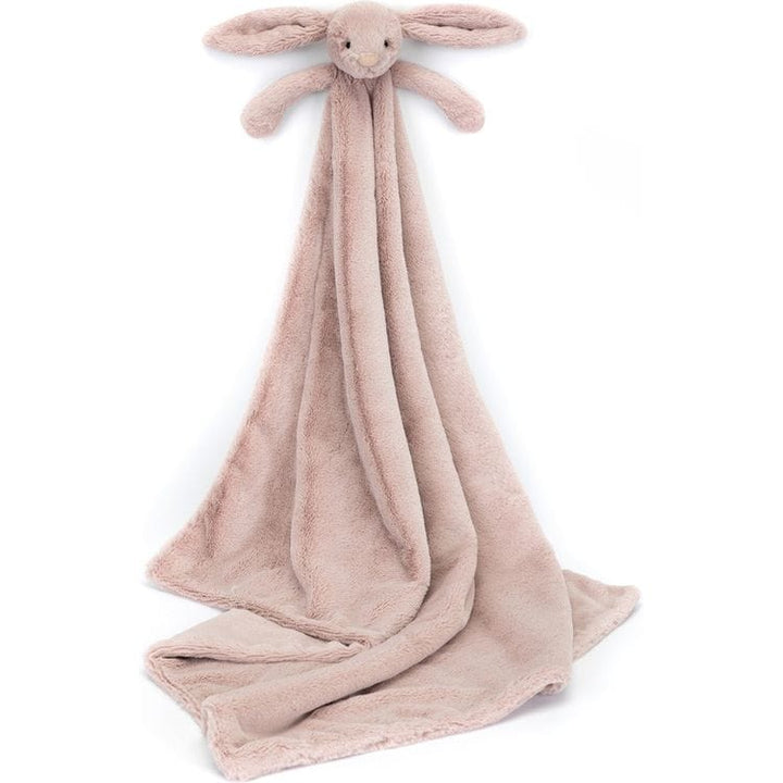Bashful Luxe Bunny Rosa Blankie is a gorgeous large blanket with bunny head and arms in luxuriously soft rose-pink fur. A soft spot for resting or for tummy time, this blankie is tied with a grosgrain printed ribbon, and presented in an elegant Jellycat gift box with note card and envelope. An indulgent gift for a new