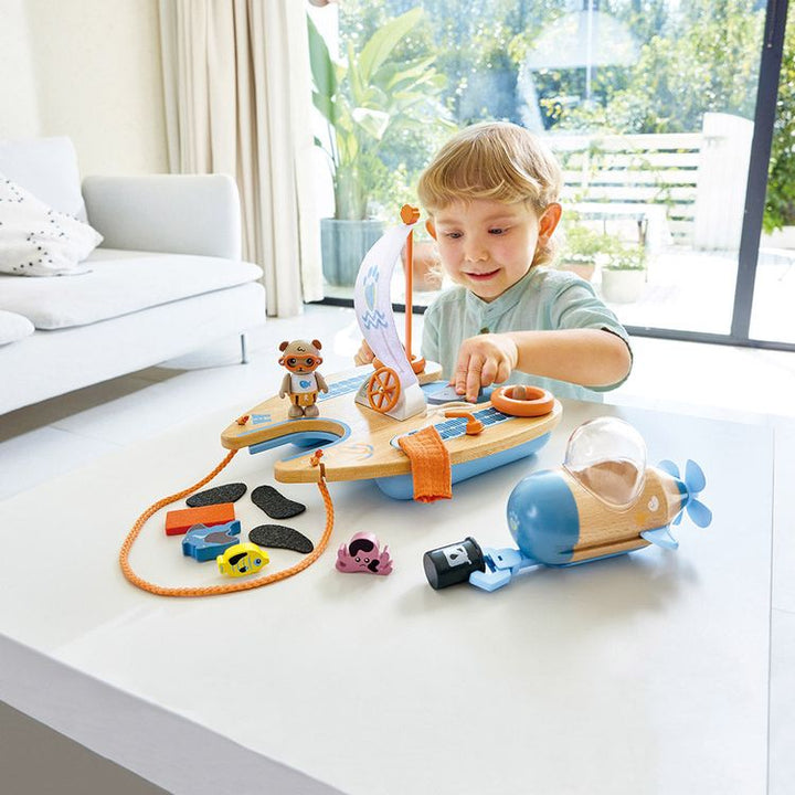 Discover ocean conservation with Ben the Otter and his Catamaran. This playset combines education and adventure, teaching children about protecting the seas. Ben's catamaran features a "solar-powered" submarine, so mini marine biologists can clean oil spills, rescue sea creatures, and understand the importance of carin
