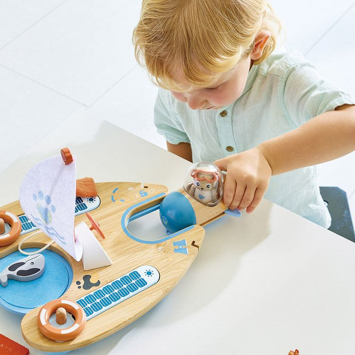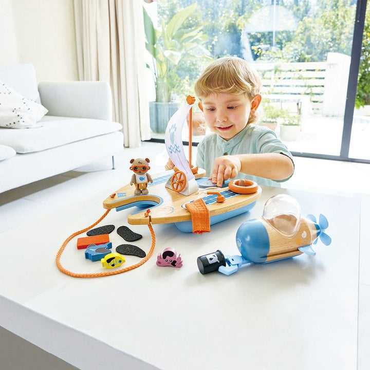 Discover ocean conservation with Ben the Otter and his Catamaran. This playset combines education and adventure, teaching children about protecting the seas. Ben's catamaran features a "solar-powered" submarine, so mini marine biologists can clean oil spills, rescue sea creatures, and understand the importance of carin