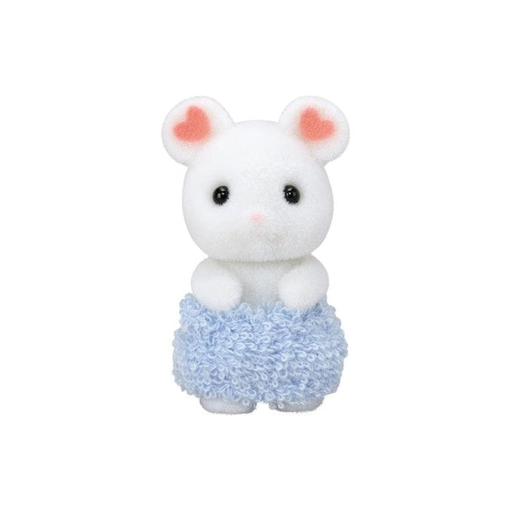 Bathtime is fun with this set that includes the Marshmallow Mouse boy and cradled baby with various bath accessories. The matching accessories include a baby bath, floor standing shower, bath toys and shower caps. The shower caps and bubbles can be placed on the figures' heads. The adorable bottles and soap are shaped
