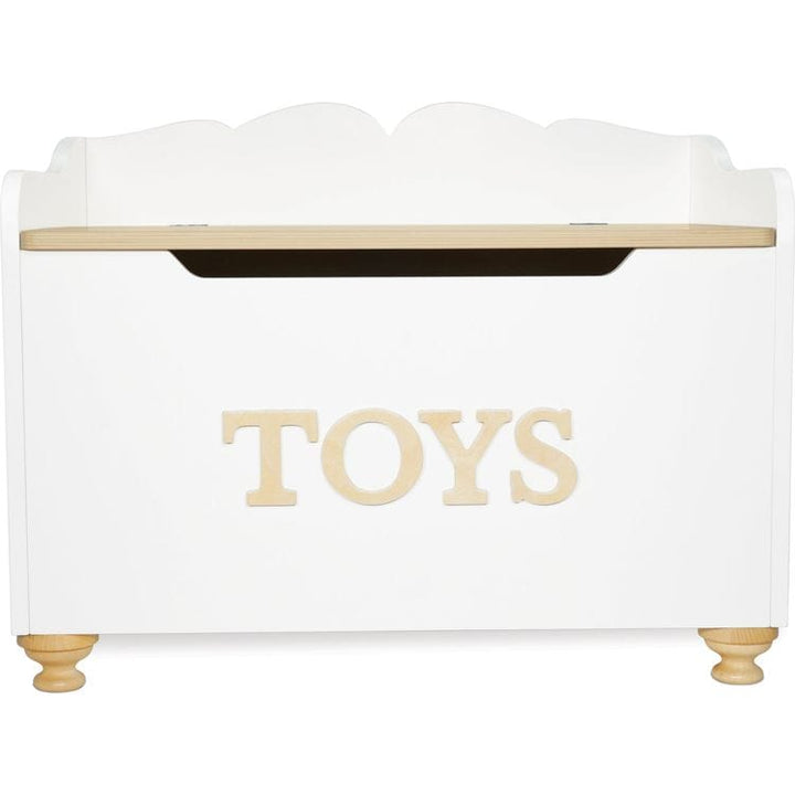 This hand-crafted toy box is the perfect place for children to store their treasures. The elegant design features beautiful turned wooden feet, embossed lettering across the front and finished in a fresh white, perfect for range of playrooms and nurseries. The toy box is safely designed with young children in mind – wi