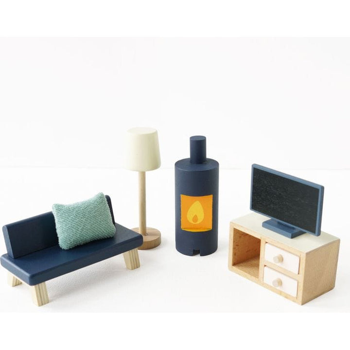 37 pieces. Start furnishing your doll house with this ideal starter set. Featuring bunk beds that can be separated, oven, kitchen counters, dining table, crockery, a dresser, nursery and play room accessories. All accessories included as pictured. Ages 3 yrs + Naterial: 50% Plywood, 15% MDF, 10% Teawood, 10% Beechwood