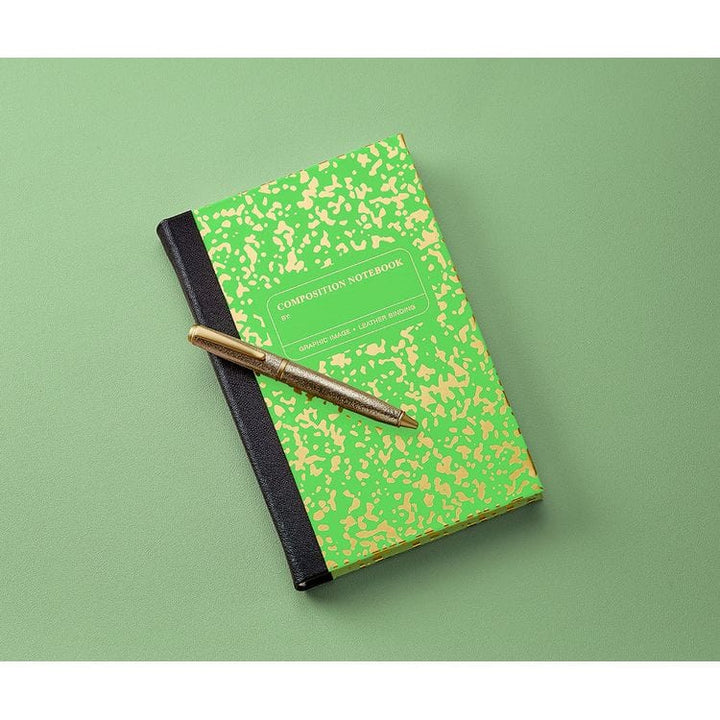 Composition Notebook in Neon Green/Gold Leather