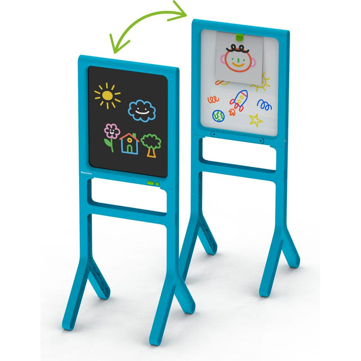 The Discovery™ Glow Easel Dual-Sided Art Station is a dynamic and innovative art tool designed to ignite the imaginations of young artists. This dual-sided easel offers a traditional drawing experience on one side and an exciting illuminated light board on the other, allowing children to explore their creativity with m