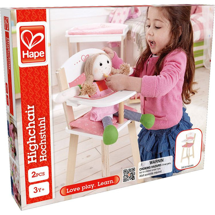 This mini highchair encourages dolls to sit up straight and eat their food. Ask what "dolly's" favorite foods are. Watch how your child guides the doll to eat. Dimensions: 25.6 x 57 x 26.3 cm Ages 3+ PLEASE NOTE: There is a shipping fee associated with this item.Â