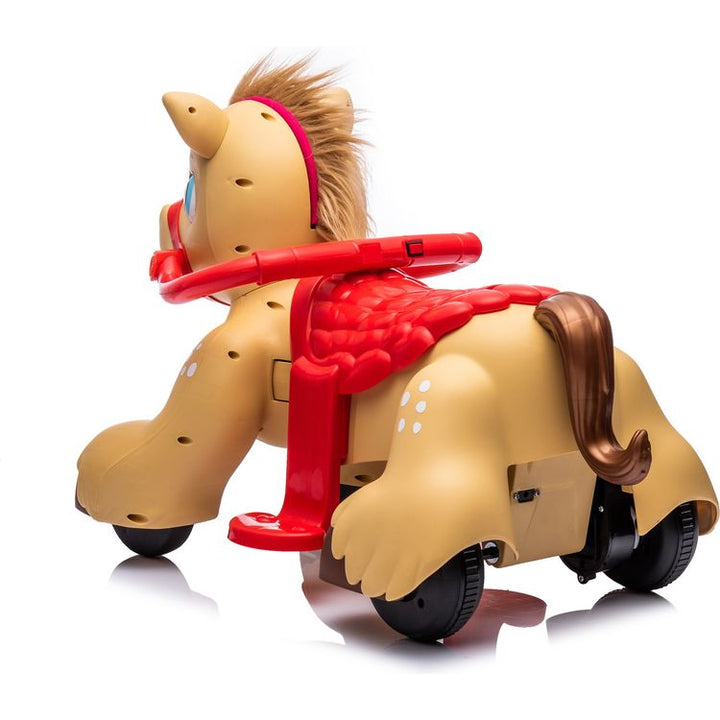 Giddy up with the Horse Ride-On Toy! This 12V ride-on is perfect for toddlers aged 18+ months. It features realistic lights and sounds, adding to the fun. The toy includes a comb and brush for grooming the horse's mane and tail, encouraging imaginative role-play. Lights and Sounds: Features engaging lights and sounds t