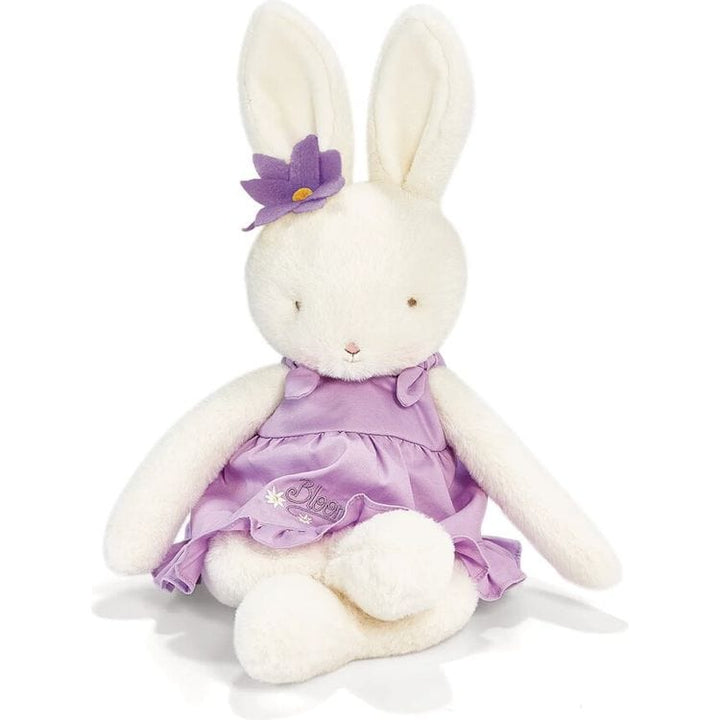 Garden Bloom, a delightful stuffed bunny straight out of a blossoming garden! Garden Bloom wears a sweet purple dress adorned with delicate embroidery, and a purple flower tucked in her ear, adding a charming touch to her ensemble. With soft cream-colored fur, embroidered face, and cute rosy cheeks, Garden Bloom’s pres