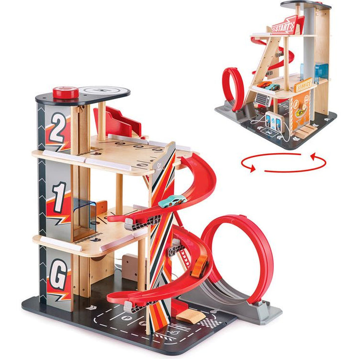 Setting up the tracks and racing the cars down the ramp allows children to make up their own intricate stories and adventures with their racing car buddies. AIDS DEVELOPMENT: This toy helps develop fine-motor skills and hand-eye coordination whilst encouraging imaginative play. VARIOUS ACCESSORIES: This garage playset