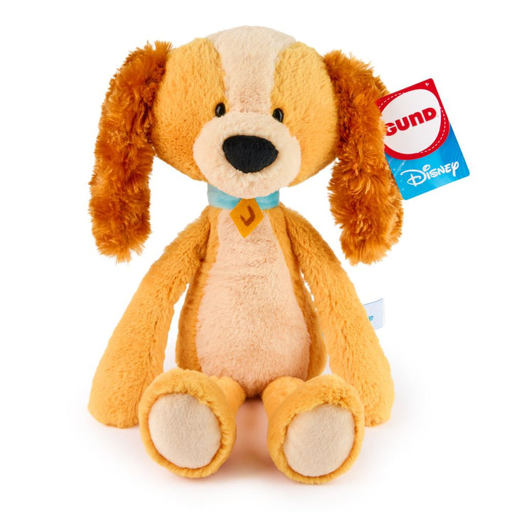 Lady, the pampered and elegant Cocker Spaniel from the classic film Lady and the Tramp, is here as a fun and floppy plush! This lovely pup features soft golden plush with long, floppy ears, a short, fluffy tail, large black nose, and her iconic blue dog collar. Like the rest of our Disney GUND Toothpick collection, thi