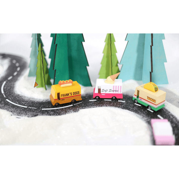 Nothing says NYC like a hot dog stand. As New Yorkers, we must pay tribute to the hot dog – it's the quintessential New York street food. Our hot dog truck is a minimalist, design-focused, vehicular interpretation of the hot dog stand with a mustard-yellow top and a perfectly toasted base! Ages 3+ Materials: solid Bee
