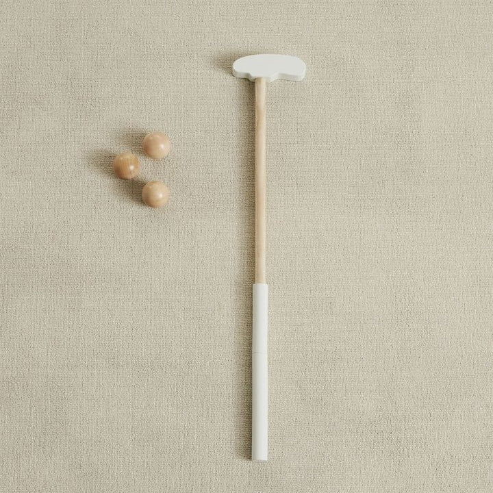Practice the perfect putt with our Keen Putting Green! Every little tiger will love our practice putting green which overlooks a resplendent view of the mountains and sunshine (etched into a plywood backboard). Comes complete with 5 flags on wooden bases that fit into holes with printed scores, an adjustable height g