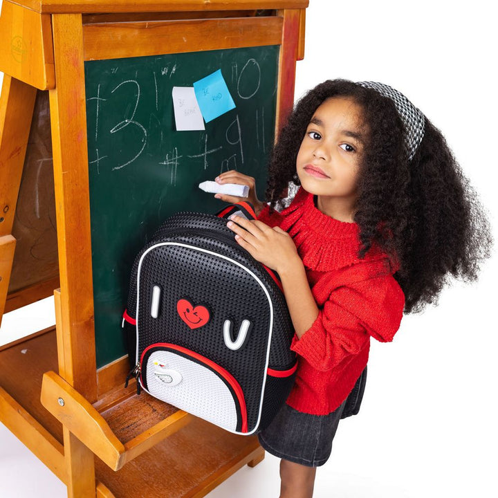 The Starter backpack is perfect for young students ages 3 to 6 yrs old. The bag fits a standard A4 folder when placed to the back of the bag. It does not fit a binder. These featherweight, ergonomic backpacks have sturdy form and structure making them comfortable and stylish! The line expands into sling bags, cosmetic