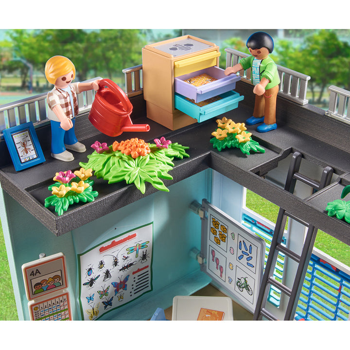 Get those pencils ready, it's time for School! With the new modern look and easy access to the Rooftop garden taking a break has never been easier. The washable board can be used to write down notes and the sticker puzzle can be revealed with water to unveil more fun. Just make sure don't let the dog eat your homework!