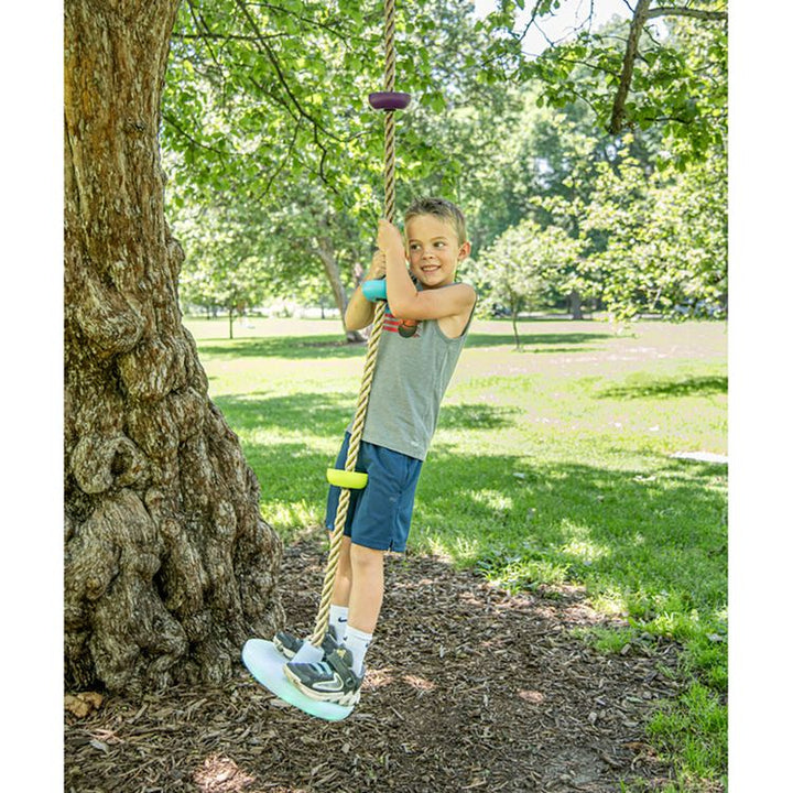 SUPER POPULAR LED CLIMBING ROPE AND SWING BASE COMBO! LED lights enable fun, colorful play both daytime and nighttime. The 25 multicolored LEDs change to 3 colors (red, blue and green) with an automatic timer shut off. The sturdy solid base assists kids in climbing up the rope more easily, compared to a smaller climbin