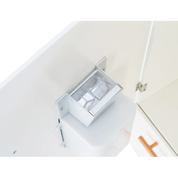 The Little Chef Paris Modular Wooden Play Kitchen comes in three units in a sleek white finish with rose gold hardware. The refrigerator features a working ice dispenser, the oven has turning knobs that click, and the deep farmhouse-style sink features a vintage-style faucet with handles that turn. The interactive feat