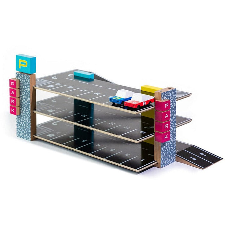 We decided to develop our own Magnetic Parking Garage! If you already own a few of our CANDYCAR® vehicles, this fully functional solid beech wood garage comes with 21 parking spots that magnetically hold your cars. The best part? They Stick to their own spot, are neatly aligned, and will stay put when the building is b