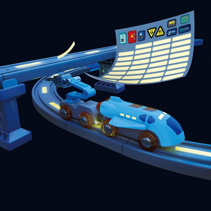 Blast off and join the interstellar fun with our Mars Exploration playset. This set merges railway and space exploration and features astronaut figurines, underground lab and other accessories for role play. With glow-in-the-dark stickers to customise their tracks, this set promotes problem-solving skills, creativity,