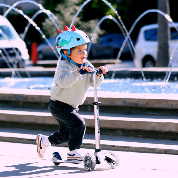 Light up your ride with the Mini Deluxe LED! This preschooler-favorite features an adjustable handlebar allowing the Micro scooter to fit your child at each stage of growth, from ages 2-5 years! Features an anodized stem, anti-slip silicone footplate and superior rear brake – and don’t forget the light-up wheels! Our L
