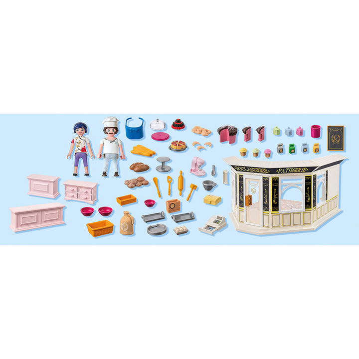 In the French bakery of Miraculous with Tom Dupain and Sabine Cheng, Marinette's parents, there's so much to discover! From delicious treats like a macaron cake, muffins, and cinnamon rolls to freshly baked baguette, bread, and rolls – there's something for every taste. Play indoors and outdoors and serve the customers