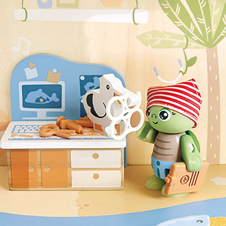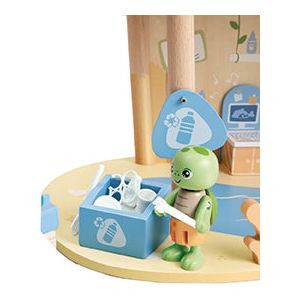 Learn how to care for our oceans with this ocean rescue base playset. Including two turtle figurines and five animals, children will help their turtle friends keep the ocean safe and clean and to look after any animals in trouble. The set features two floors to explore with plenty of activities like a spiral slide and
