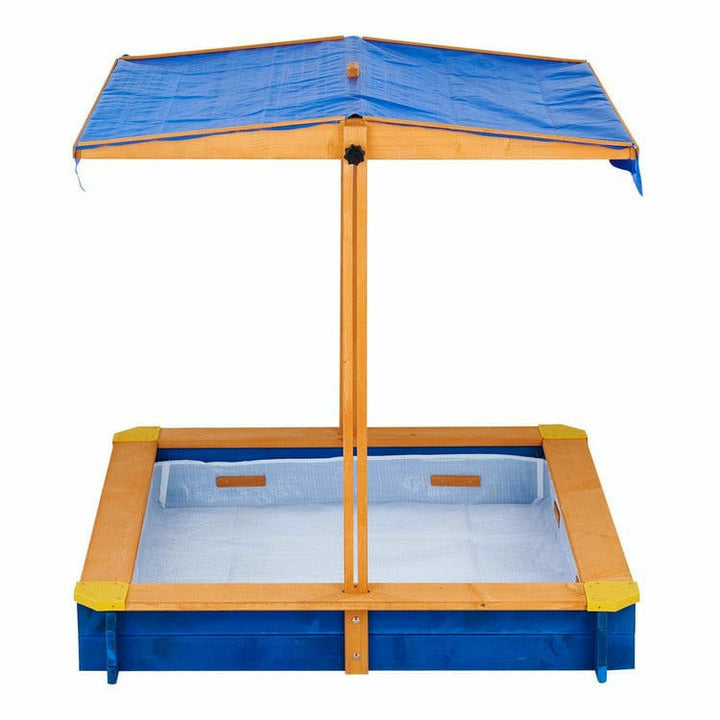 Bring playtime outside with the Teamson Kids Outdoor Summer Sandbox with Canopy. This colorful sandbox features a natural wood and deep blue square design that brings a colorful addition to your home's outdoor area. The built-in rotatable canopy offers protection from the sun while keeping your children cool in the sha