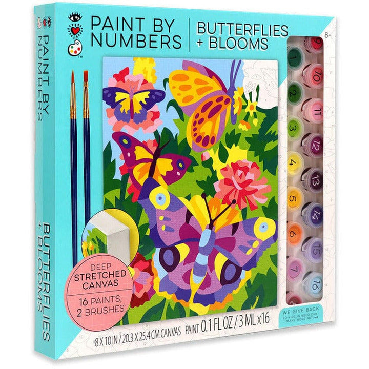 Paint by Numbers in 3 awesome themes! It’s classic Paint By Numbers, elevated for kids 8+. 3 unique themes with beautiful artwork with enough detail to yield an impressive result. Deep canvas that can hang or stand, plus 16 colors of paint and 2 brushes. Clever tray pulls out to become your work station. Deep 1.25 in c