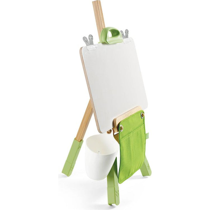 A portable and eco-friendly art companion for young artists. Crafted from sustainable bamboo, it's perfect for creative adventures on the go. PORTABLE ACCESSORIES: This lightweight easel includes the easy-to-assemble bamboo body, three easel leg connectors, one canvas, one wooden drawing board, one foldable brush case,