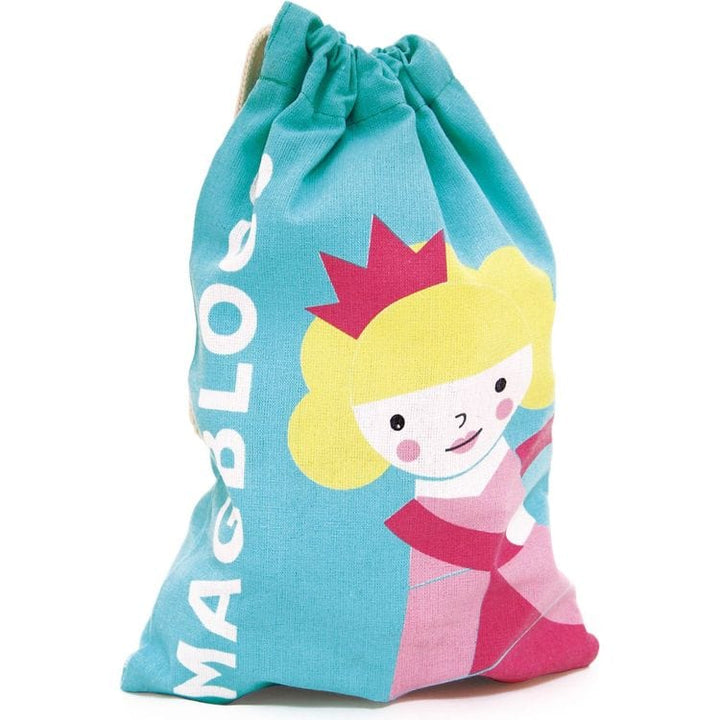 Are you a princess or a mermaid, or a fashion conscious girl? Double sided and printed onto solid rubber wood, in pretty contemporary colors, these 15 pieces will make up 4 combinations of differently dressed girls! We have even added a lovely printed drawstring bag. For ages 3 years & up material: wood Care instru