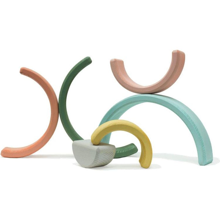Toddlers will love to stack, nest or make different shapes with our Rainbow Nesting Blocks.  Our nester comes with 6 arched pieces of stained wood, and will be a keepsake for sure. Materials: Wood and non-toxic stain Ages: 10 months & up Dimensions: 14 x 7.75 x 1.5 inches PLEASE NOTE: There is a shipping fee associ