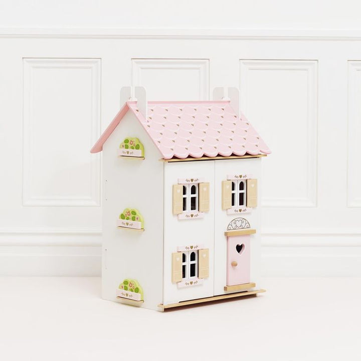 This delightful dolls house makes a stunning gift, painted in fresh white and pink hues with gold heart motifs. Crafted from sustainable FSCâ„¢ – certified wood, if features stunning detailing and interactive elements for immersive play.  Perfectly scaled to fit our full range of dolls and accessories (sold separately).