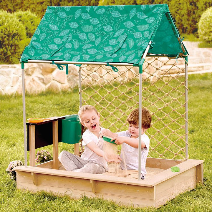 Turn your garden into a creative adventure playground with our all-in-one outdoor set! This versatile set combines a sandbox, kitchen, planter, easel, and a cozy, removable roof. Whether digging for treasure, gardening, or painting – children can let their imaginations run wild here. The ideal addition to any outdoor s