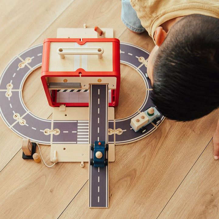 Your kiddos will love our Take with Me Garage. It comes with 12 wooden pieces including cars, trucks, peg people, ramps, signs, charging station and much more. But the best part is kids can pack up all the pieces into the carry along garage and go anywhere. Perfect for car rides, plane rides, or just quiet imaginary