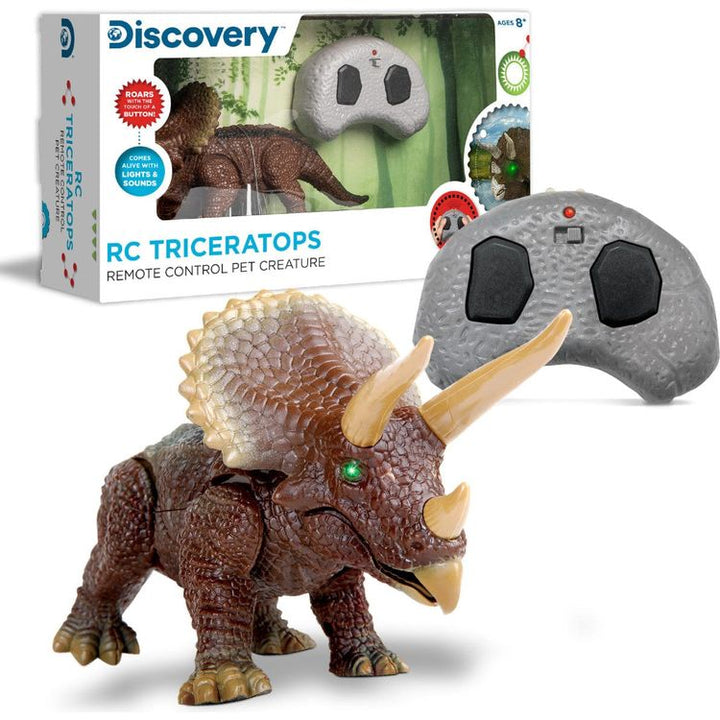Do your children love anything and everything prehistoric? Ignite their minds in a fun, educational manner with Discovery™ RC Triceratops figure and watch this Cretaceous period creature come to life right in front of them! This small yet fierce remote-control triceratops toy stands at 10-inches, but don't let the ti