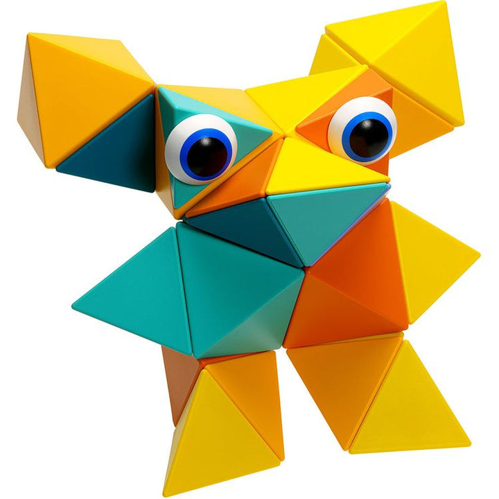 Explore the colors of honey and nature in this 36 piece set includes 6 octahedrons, 12 tetrahedrons, 12 half-tetrahedrons, 6 eyes (in total 36 pieces) + Leaflet + Limited Edition "Inspiration Book". With a large set you can either build one large construction or several smaller ones and share the process of creating wi