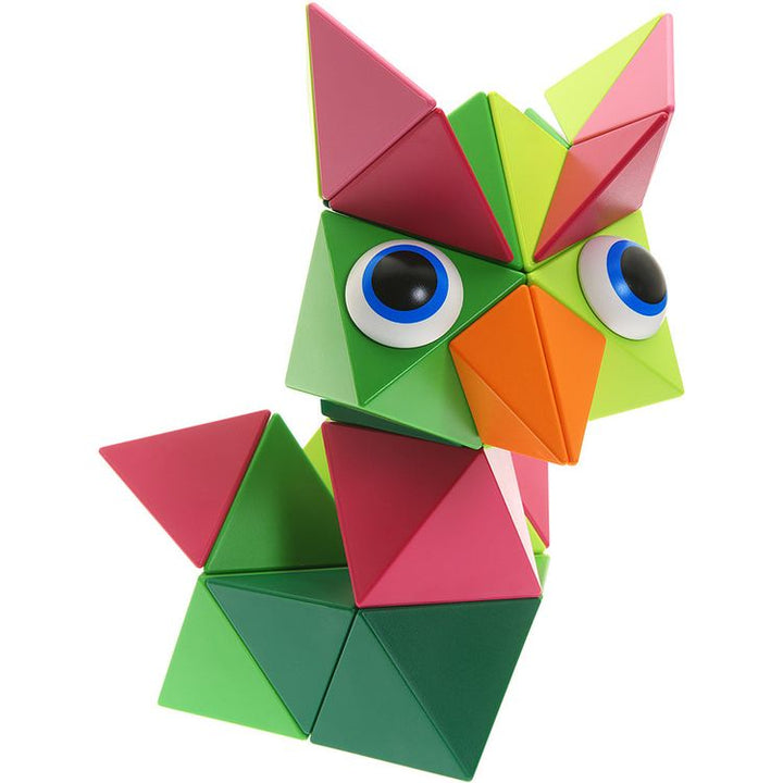 Bright Jungle colors abound in this 36-Piece Set includes: 6 octahedrons, 12 tetrahedrons, 12 half-tetrahedrons, 6 eyes (in total 36 pieces) + Leaflet + Limited Edition "Inspiration Book" With a large set you can either build one large construction or several smaller ones and share the process of creating with your fri