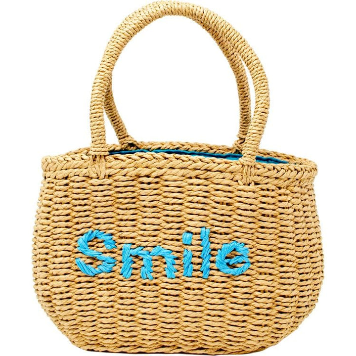 Wicker Basket Bag “SMILE” – Blue
